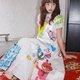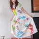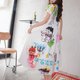- 腰间抽褶拼接式版型,配合裙身的图案,更加灵动俏皮 抽褶花边袖修饰大臂的线条,小泡泡袖也能修饰肩部的轮廓。 美式复古插画,加上喷漆感的线条,营造酷酷的氛围