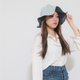 零浪费使用二手牛仔裤再生设计后剩下的碎布,再次重生成为优雅荷叶边帽,出货以原花色为主。剪裁车缝与在地妇女合作,回馈在地工作机会。软质帽子,放包包好携带。