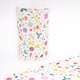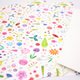 五颜六色的花痴真可爱!一组留言卡和一个带有纹理的白色信封。