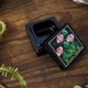 盒盖上的彩绘小巧精致,盒身侧边有一圈细腻的金边