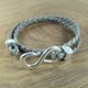 手环扣件为抗敏合金表面覆银+ 真皮皮革