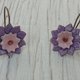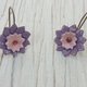 所有形状皆是从铜片上以手工裁切而成。铜是珐琅工艺的绝佳基材,将湿润的珐琅釉料覆盖于铜表面后,经过干燥,再以摄氏 790 度的高温窑烧。 这朵花由两片珐琅质地的部分组成,一片是浅紫色,另一片则是较深的紫色。 耳饰的扣环同样是手工制作。