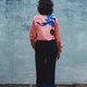 独家设计的印花与鲑鱼粉色麂皮拼接衬衫