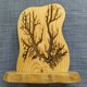 Luminous stand, wooden decor for a bookshelf, wood burning figure