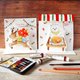 或是画出可爱的小鹿和圣诞装饰,学习清透明亮的调色和圣诞常见的配色,绘制属于自己的送礼麋鹿,并发挥创意将水彩插画动手做成立体卡片,小鹿背上的礼物,是可以打开写下祝福话语的小卡哟。