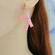 粉色系不对称蝴蝶结树脂耳环 14KGF金包银耳勾 可改夹式