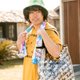 This series is based on the motif of "Tonttu," a fairy that is believed to live in sauna rooms. The towel becomes cool as soon as it is wetted and shaken, and the UV-cut finish protects it from strong sunlight. Wrap it around your head in the sauna to protect you from the heat, or wrap it around your neck for a comfortable outdoor air bath.