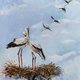 这幅画有一个独特的故事。 一次空袭期间 在当前的战争中,我住在乌克兰,我可以生动地想象我将如何解释空袭警告。 起初,我匆忙地画了一幅清澈透明的天空。 然而,我几个月都没有动过它。 我知道我不想描绘焦虑。 也没有准备好想象天空被警报声撕裂的情景。 当春天临近时,我的看法发生了变化。 我只想在祖国晴朗的天空中看到鸟儿。 鹤正在返回家园,筑巢,这是未来和平生活的标志。