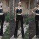 Side opening drawcord splicing mesh cloth to expose thigh skin to look sexy. The drawstring part can be adjusted freely according to personal preferences, and can be adjusted to completely cover the thigh.