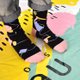 因应脚尖斜角织法,左右脚设计,脚底织上“That's right!”字样即为右脚