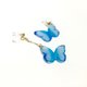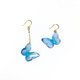 - 【若桑】清泉。宁静蓝/石英蓝粉蝶。蝴蝶耳环。14K金耳钩/不对称耳环/不过敏耳环/耳饰/透明耳夹