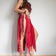 鲜艳红色的部落风格开衩裙,附绑带与闪亮饰片的裙子,肚皮舞服饰