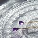 精致的长耳针,将美丽透明的紫水晶水滴与赫基默钻石晶体融为一体。