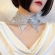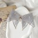 以灰色蕾丝为基底,缀以水晶玻璃与锆石的坠饰,