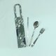 [ 提把环保餐具套- 浅绿底白雨滴 ]