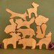 These wooden toys are meant to teach the name of each animal, its shape, size, and where it lives, and what it eats.