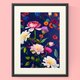 以各种粉彩色调、独特造型的花卉图案,搭配带有日式风格的蓝色背景,散发出宝石或矿石般的雅致光泽。