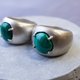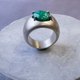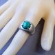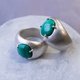 为您献上这款点缀着孔雀石的银质造型戒指。