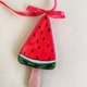 以西瓜造型呈现的圣诞装饰。全手工制作。高 13 厘米,宽 6 厘米,深 2 厘米。单件贩售。