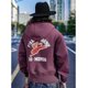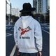 RED TORNADO开发了一款超重磅的卫衣布料,布料100%棉,已经洗水不会再缩水,洗水后平均530g,这款帽T拥有拳击手卫衣的下摆、袖口螺纹,拳击手口袋,印花灵感来自二战时期美国空军,菲力猫是当时常使用的非官方喷绘涂鸦文化的经典元素。