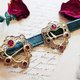 皮带扣有着精细典雅的纯银镀金掐丝,玻璃红宝石点缀其中,掐丝上还有数朵小巧可爱的金色花朵,就算当作艺术品欣赏也令人心神愉悦。