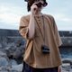 衣服下摆做圆弧剪裁设计,领口排扣设计增添层次与细节感,有深灰、卡其、杏色三种颜色选择