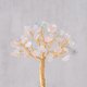 “永生水晶树”是以水晶及矿石结合注金工艺线编制而成。底部使用缠绕的方式包裹着原矿,展现出根系生长的姿态,顺着枝干向上攀升的过程,逐渐展现出花木的生长方式,结上一颗颗水晶,犹如枝叶绽放,绚丽而生动。