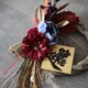【材料】稻绳、福扇、干燥花、小麦、银桦叶、冬青叶、水引线