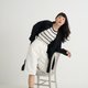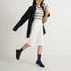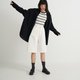 - 前开襟设计,搭配扎入式上衣更显俐落。