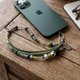 它以清新的绿色为主色调,搭配草绿色、清柠色及深灰色的优雅配色,仿佛让你漫步于静谧的森林中,感受大自然的灵动与和平。这样的色彩选择不仅让手机链显得时尚,更能展现佩戴者的品味与个性。