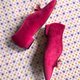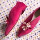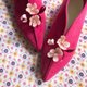 冬款平底鞋,鞋面运用压花丝绒面料,鞋头的梅花是运用蚕丝传统手工技艺来制作完成,鞋内附上一层温暖的白色羊毛鞋垫。