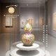 - 【福禄平安茶具礼盒组】 取材故宫典藏,灵感源自粉彩福禄寿葫芦瓶。茶壶葫芦造型,圆润饱满,寓意福禄平安。茶海双耳花朵,承袭文物之美,团圆金桂相伴。茶叶罐浮雕设计,一藤两葫芦,密封防潮,福禄成双。多功能茶盘,蝴蝶结绥带象征长寿,实用美观兼具。