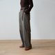 KOOW/日产微磨毛感斜纹全棉休闲裤 复古腰头设计带腰带高腰直筒