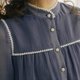 - "灰蓝色彩的服装很少常见,用色ZUI多的就是灰蓝色的衬衫了,此款在设计时采用了不同的面料,将灰蓝色色调设计体现的淋漓精致,突出次服装的质感。 小立领设计,贴合颈部,突出颈部的优雅。也是民国时期ZUI喜欢采用的领型。