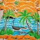 日本古着 夏威夷 渡假图腾 橘色 短衬 L号 近全新