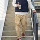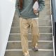 这款休闲裤由纯棉布料制作而成,并运用单褶细节打造出稍宽松版型,