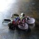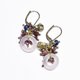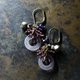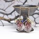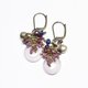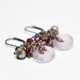 这是一款以淡紫色多宝石缀饰、饱满的柘榴石、蓝色珠饰与民族铃铛串连而成的耳环。