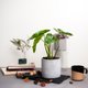 - 居家布置|新手观叶|独角兽蔓绿绒 含盆尺寸:W12×H40cm (±5cm) 喜欢明亮、温暖环境,展叶快速的独角兽蔓绿绒。 植栽包含水泥花盆、铺面木块。