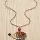 - Enamel necklace made by hand. The form of the pendant is cut by hand with shear. The graphics is painted with vitreous enamel and used sgraffito technics (scratch work). Both side of the shape is enamelled, the back side is covered with black. Absolutely handmade unit.