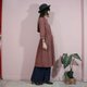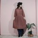 Description: [Vintage洋装](日本制)粉红色菱格花纹精致打褶半身排扣古着洋装