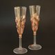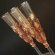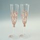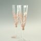 优雅的 2 个香槟敬酒笛套装,手绘和装饰。玫瑰金透明水晶。透明浮雕反射效果小心形,带有闪亮的水晶水钻,设计为花朵。茎上的水晶形成迷人的“环”。独一无二的香槟杯,可立即出货!