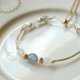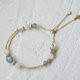 - ● 束口链设计可依个人手围调整到适合自己的尺寸 ● 拉长石、月光石、14K包金隔珠、14K包金弯管、14K包金链