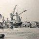 细线条、交叉影线和点画的使用有效地传达了纹理,从水中的涟漪到起重机和船舶的钢框架。均衡的布局和细致的细节吸引观众探索构图的每个角落,展示艺术家对透视和技术艺术品的掌握。