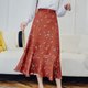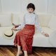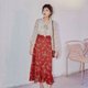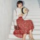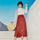 - 采用红底印花花柄图案,仿乱麻质地轻盈飘逸,中高腰的款式设计,拉长大腿比例的同时更显腰身纤细