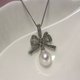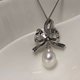 纱织小姐甄选出一枚葫芦形澳白珍珠,腰部最小直径10.8mm,皮光细腻,独属于澳白珍珠的丝绸光感明显,微瑕微生长纹。纱织小姐为其配置了自然主义的蝴蝶结款式扣头,赠送一条银项链,可以万能搭配项链,可多角度展现女性的温柔窈窕,360度无死角绽放光彩。