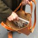因应其柔软的特色,我们制作了翻翻包款式,可以肩背或手提,自然垂下时是方便使用的中型包款,不占空间。