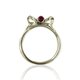 I hand carved the frame of the magnifying glass out of wax with prongs to set the ruby stones, I then cast the wax into silver. Then polished the piece, set the ruby stones and stuck the glass in the frame.