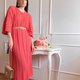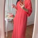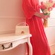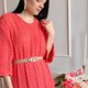 Midi 手织洋装 (附同色编织腰带) 订制款 颜色 (如图所示):154 exotic pink。 模特儿身高 165 厘米,穿着 L 尺寸。 纱线:棉。 领口类型:V 领。 保养说明: 水温 30 度手洗。 平铺横向晾干。