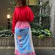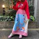 这是一件使用库存布料与复古布料拼接而成的棉质裙子。