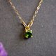 一条简单的项链,镶有一颗铬透辉石,一种美丽的深绿色宝石。